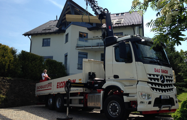 Die Anlieferung des Materials erfolgt mit eigener Logistik an Ihr Bauvorhaben und Ihr Lager mit Hochentladekran.
